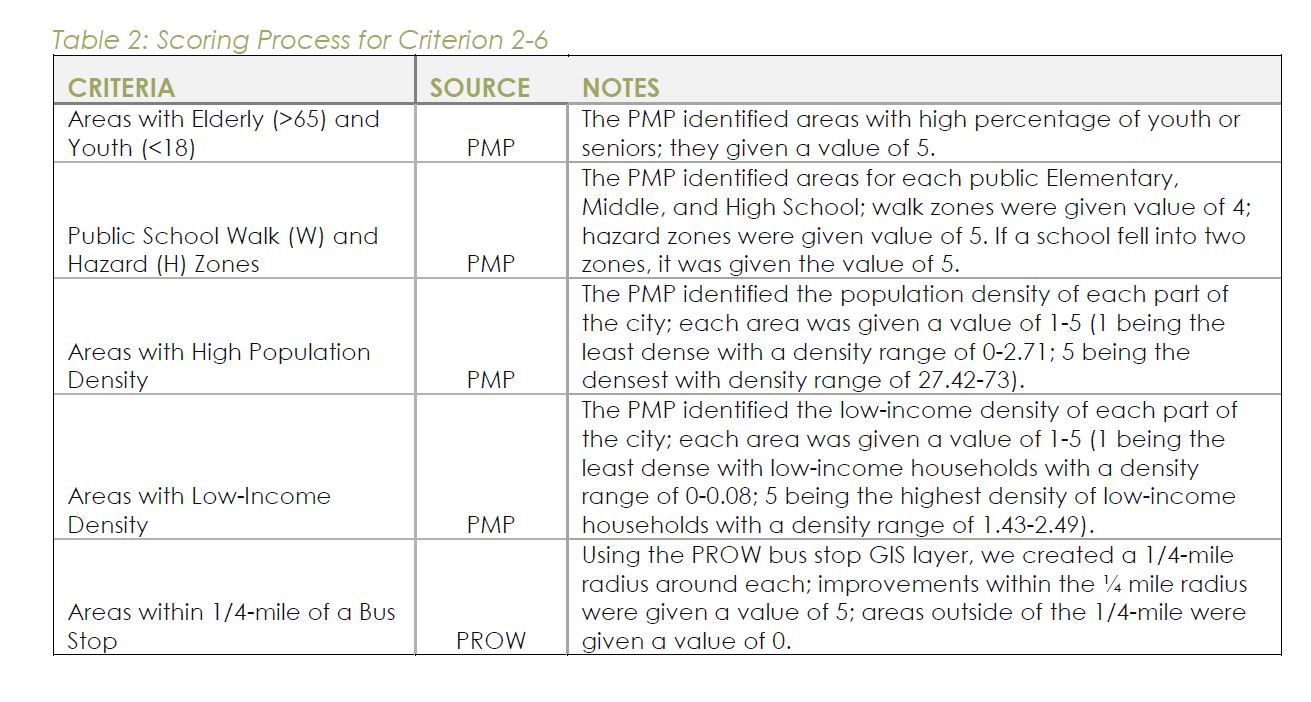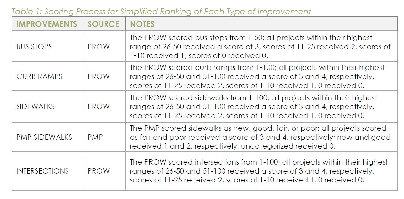 GOAl: to develop a list of high priority (ranked) pedestrian Improvement proects under 50k for construction based on objective criteia
